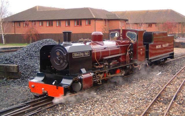 The mass of data produced by these instruments had to be recorded and so the coach adjacent to the locomotive became the temporary dynamometer car for the test engineers with a data logger plus two computers to input run details and view the results. Power for this equipment was supplied by a portable generator further back down the train and the same 26 Tonnes set comprised of eleven carriages plus a generator car and a guards van was used for all the tests. Each locomotive was tested in turn with BVR chairman and driver Andy Barnes on the footplate assisted by Bob King and Patrick Keef acting as firemen. We used the nearest long bank close to Aylsham to provide something for the loco to work against and after accelerating the train down the bank from Burgh summit to a specified speed at the foot of the bank at Mermaid under bridge we then attempted to maintain a constant speed up the 1:110 bank towards Brampton. The locomotives were driven with a wide open regulator and the speed was controlled during the climb by adjusting the cut-off.